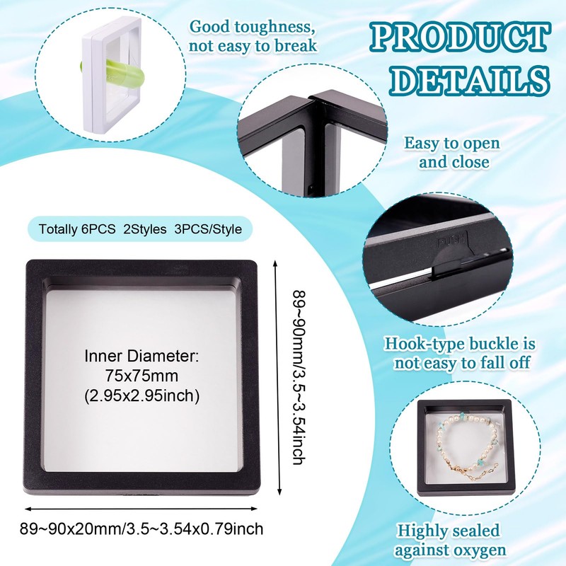 • 【What You Get】--Comes with total 6pcs 3D floating display case, 2 styles, 3pcs/style. Size--about 89x89x2mm/90x90x2mm; inner diameter: 75x75mm.
