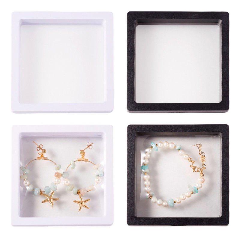 • 【3D Floating Effect】-- The square floating frame display case makes your jewelry float between transparent flexible membranes, showing a 3D suspending effect that make your jewelry more unique and eye-catching.