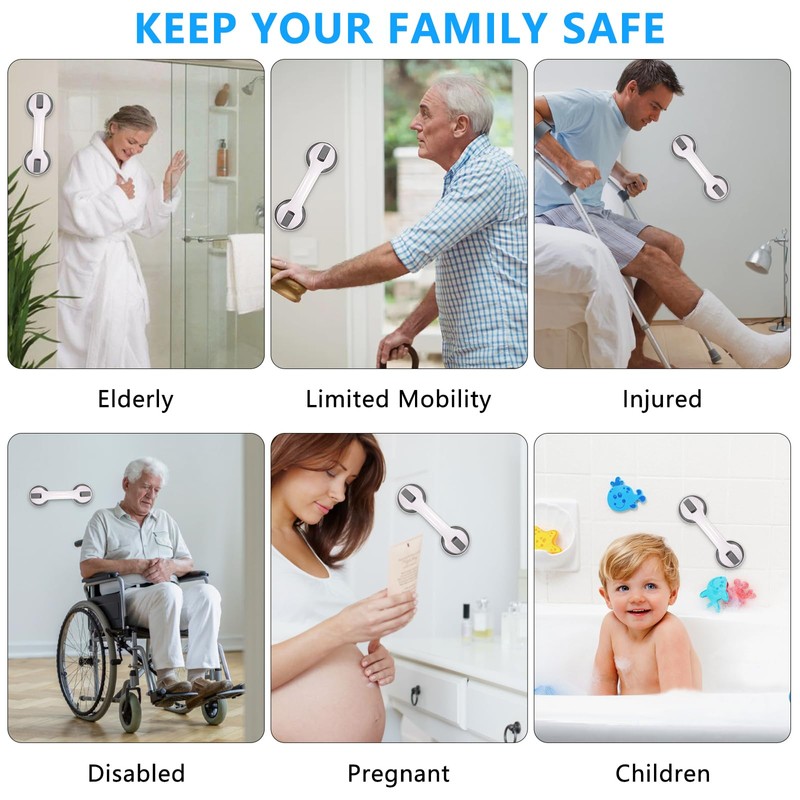 - 👍🏻〖GUTER HELFER〗Der Saugnapfgriff für Badewannen und Duschen hat bequeme, leicht zu greifende Griffe, die einen rutschfesten Griff für mehr Stabilität und Sicherheit gewährleisten. Bietet stabile Gleichgewichtsunterstützung für ältere Menschen, schwangere Frauen, Kinder und Menschen, die Schwierigkeiten beim Stehen oder Gehen haben. Geben Sie Ihrer Familie ein Gefühl der Sicherheit.