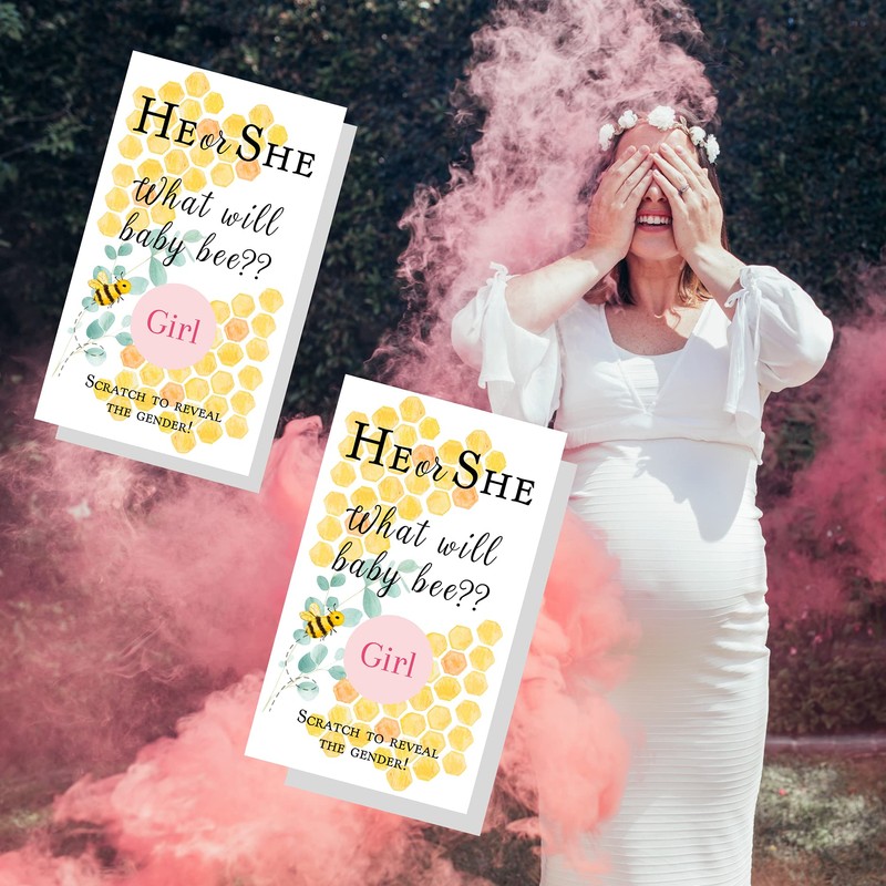 As an expecting parent we know this is a very exciting time for you! These bee themed gender reveal scratch off cards allow you to tell friends and family that you're having a baby boy in the cutest way possible!