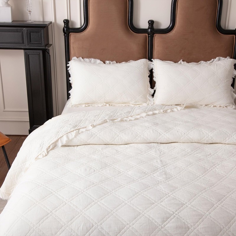 • Comfortable & Lightweight - This off-white queen size cotton quilt set is made from high-quality cotton, offering a lightweight quilt queen size that feels soft and cozy. Perfect for all seasons, it’s ideal for both the warmer months and cooler weather. Whether you need a queen size coverlet or a queen size quilt, it provides an incredibly comfortable sleeping experience