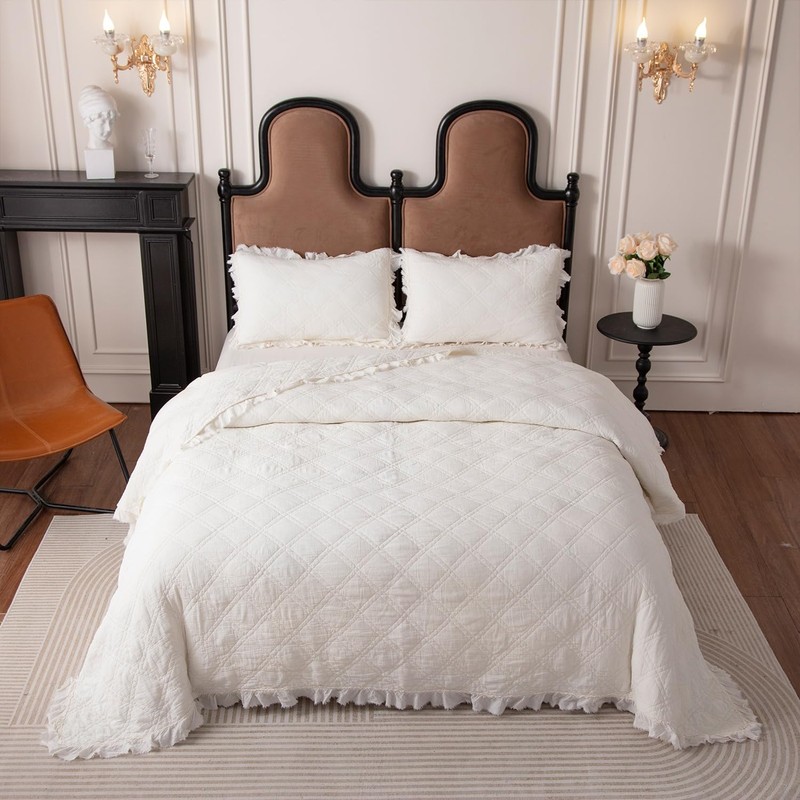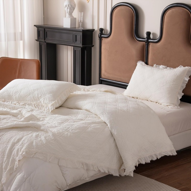 • Breathable & Skin-Friendly - Made with premium cotton, this queen size cotton quilt provides a breathable and gentle feel. Its natural fibers offer ultimate comfort against the skin, making it perfect as a white comforter queen for warmer months or as a cozy summer quilt queen size during cooler seasons. Enjoy a good night’s sleep with this soft, breathable bedspread
