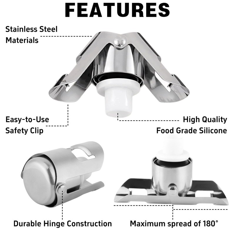- Premium Material: For your health, We use high quality stainless steels and food grade silicone, makes wine stopper sturdy and long-lasting enough for holding increasing pressure inside the bottle. With smooth edges and fingerprint-proof coat