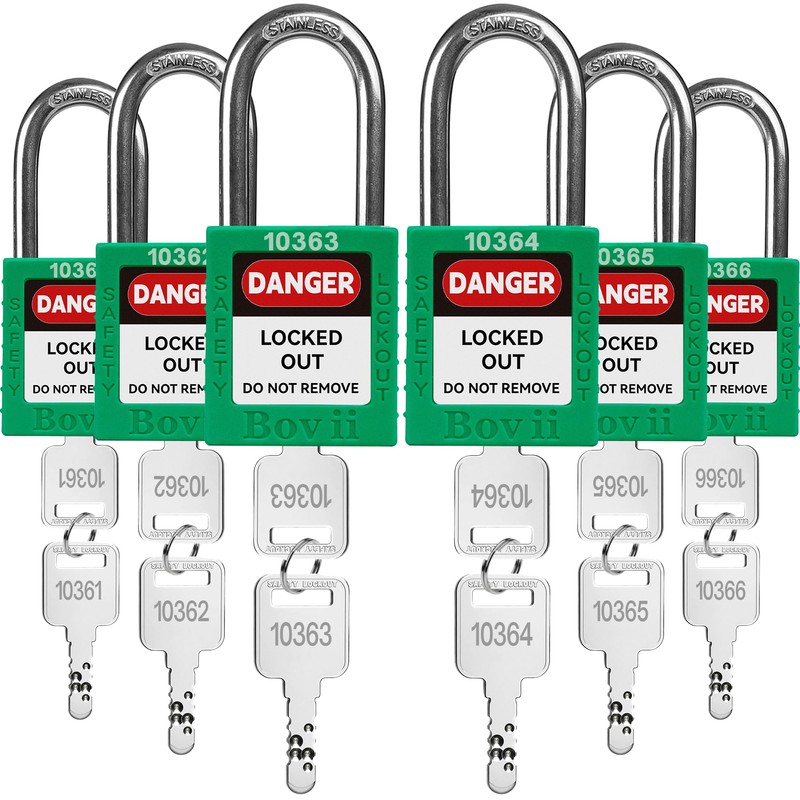 Boviisky 6 Green, Keyed Different, 2 Keys Per Lock, OSHA Compliant Lockout Tagout Locks