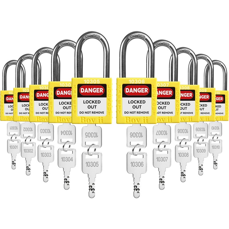Boviisky Lockout Tagout Locks Set - 10 Yellow Lockout Locks Keyed Different, 2 Keys Per Lock