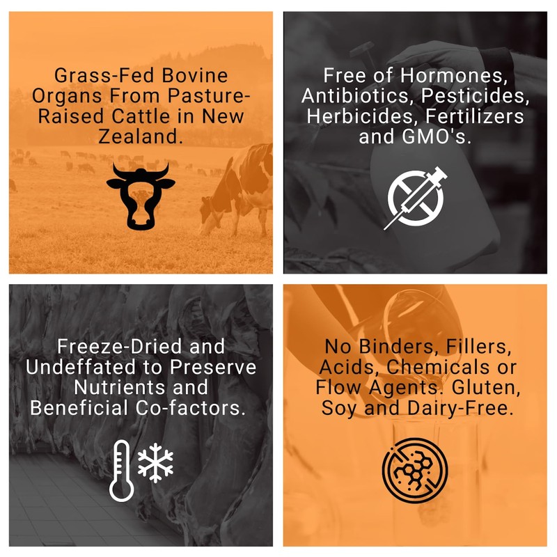 - GrassFed Beef Organ Supplement (Liver + Heart + Kidney) From Pasture-Raised Cattle in New Zealand.