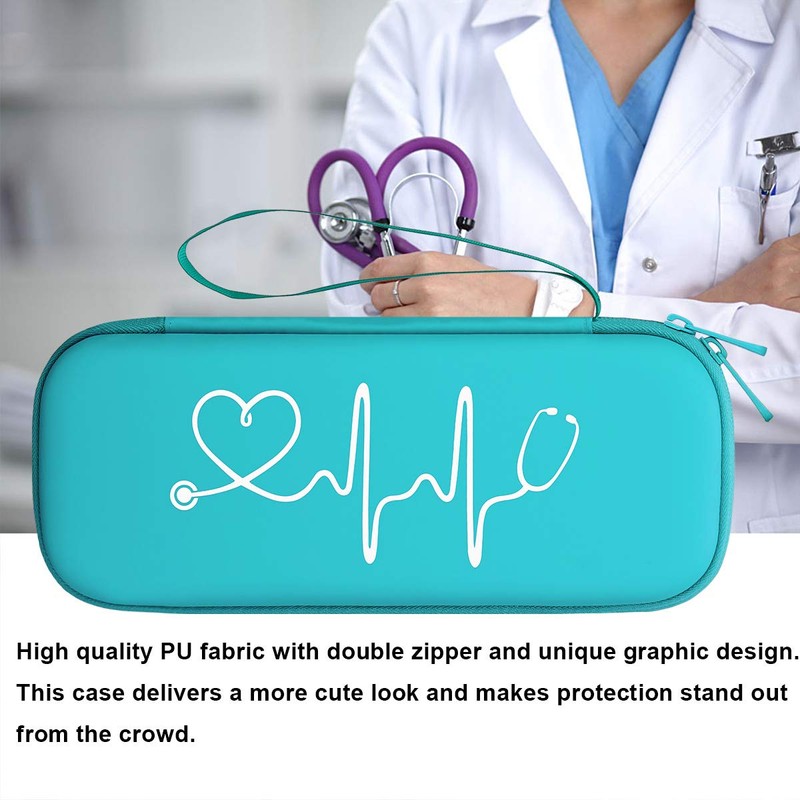 - This stethoscope holder is Semi Waterproof, shockproof, Stylish and Durable. Guaranteed to prevent any damage to your Stethoscopes. Double zipper design provides easy access to insert and remove your stethoscope and nurse accessories for work.