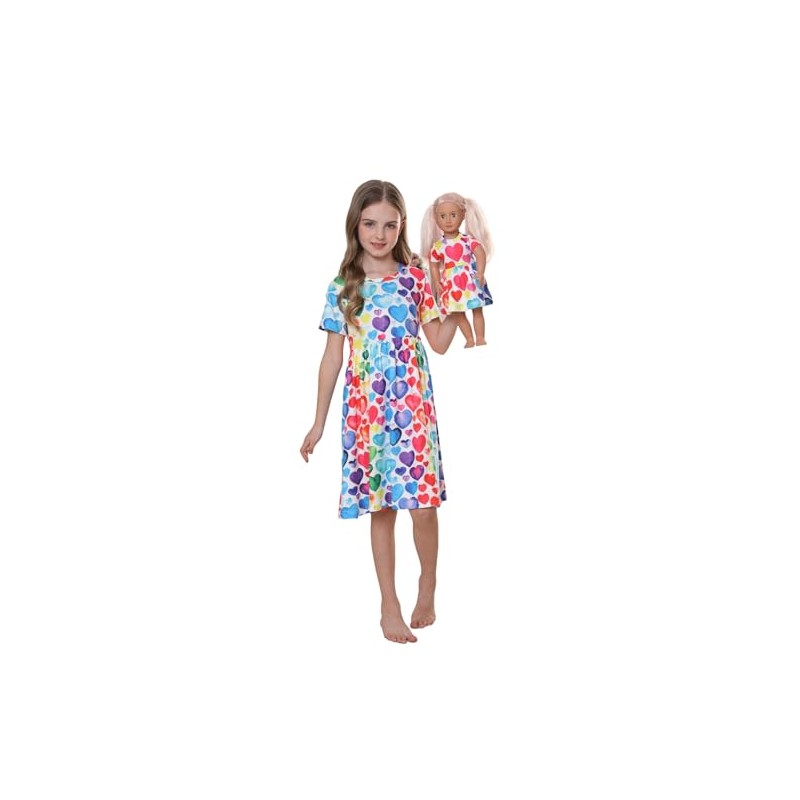 Bow Dream Girl Dress and Matching American Girl Doll Clothes for Girls Heart Shaped Print Size 140