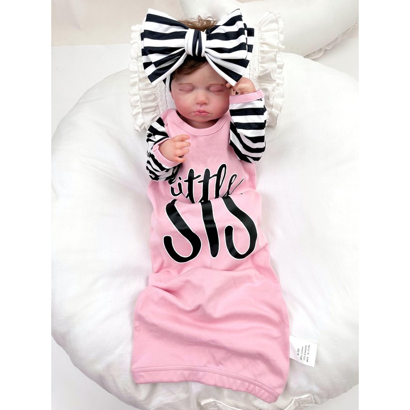 Bow Dream Newborn Baby Girls Gown Flower Headband Set Soft Cotton Infant Sleeper Baby Sleep Gown with Mittens Dusty Rose