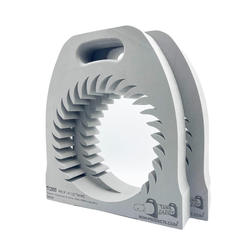 - Gas Cylinder Holder: The Tank Caddy from BOW Products provides an inventive new way to handle and transport welding gas cylinders. Each Tank Caddy is lightweight, strong and made of durable XLPE material. The Tank Caddy is designed with a comfortable grip handle and patented spiral center cut out that holds tanks with a diameter of 9” to 9.5” firmly in place.