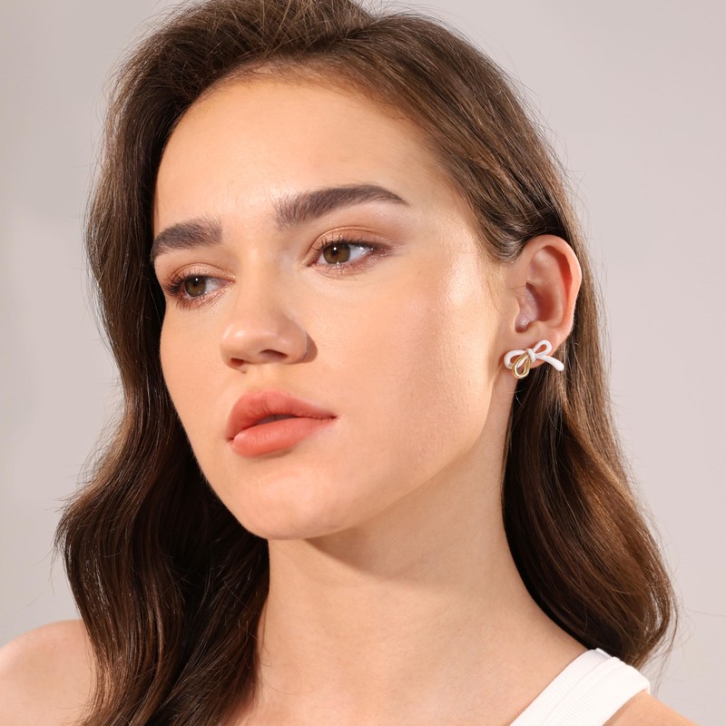 Bow Tie Enamel 14k Gold Plated 925 Sterling Silver Post Stud Earrings for Women | Lightweitght Hypoallergic |, Brass, No Gemstone