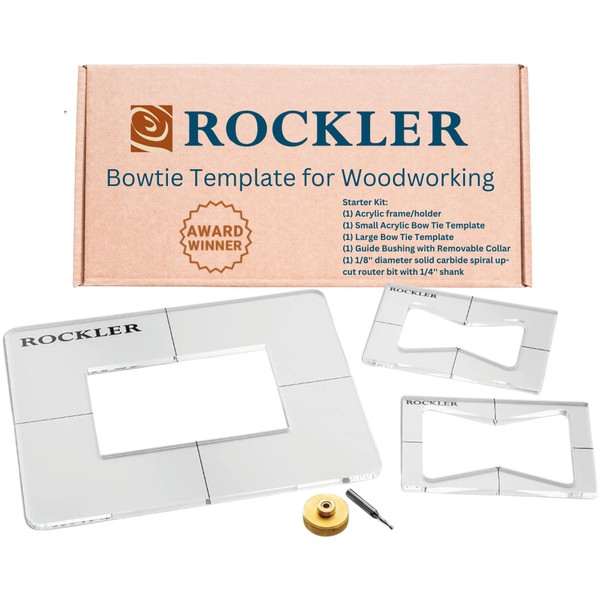 - Bow Tie Pattern Template Pack Includes: The Rockler bow tie inlay starter kit includes (1) Acrylic frame/holder, (1) Small Acrylic Bow tie template, (1) Large Bow tie template, (1) Guide bushing with removable collar, and (1) ⅛” diameter solid carbide spiral up-cut router bit with ¼” shank.