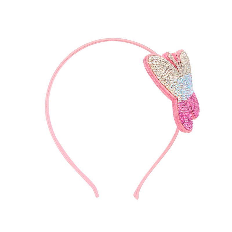 Bowbear Girls Womens Crystal Party Headband, Pink Butterfly