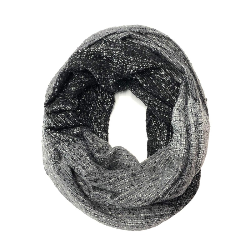 Bowbear Tricolor Winter Knit Infinity Scarf with Beanie, Gray