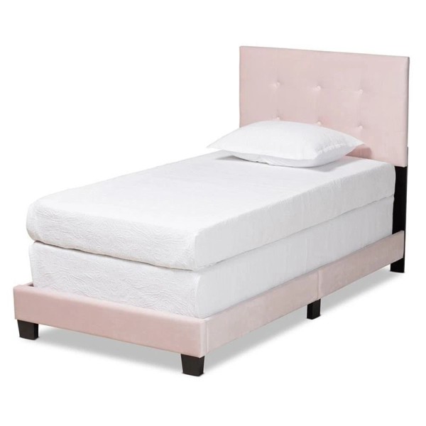 Bowery Hill Light Pink Upholstered Twin Size Panel Bed