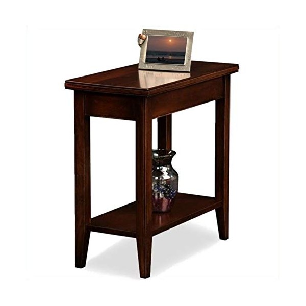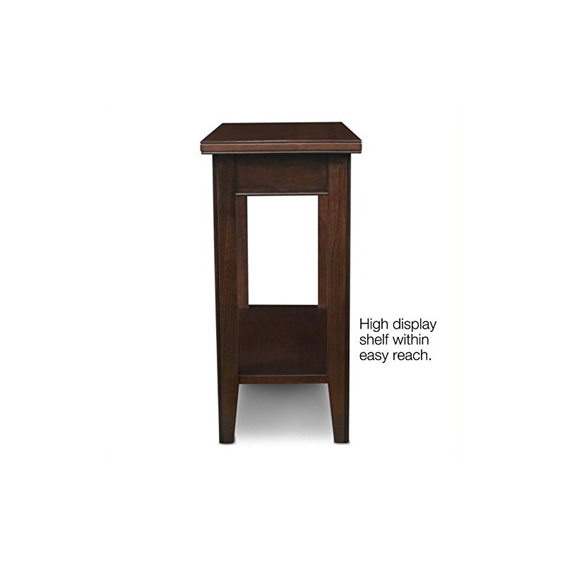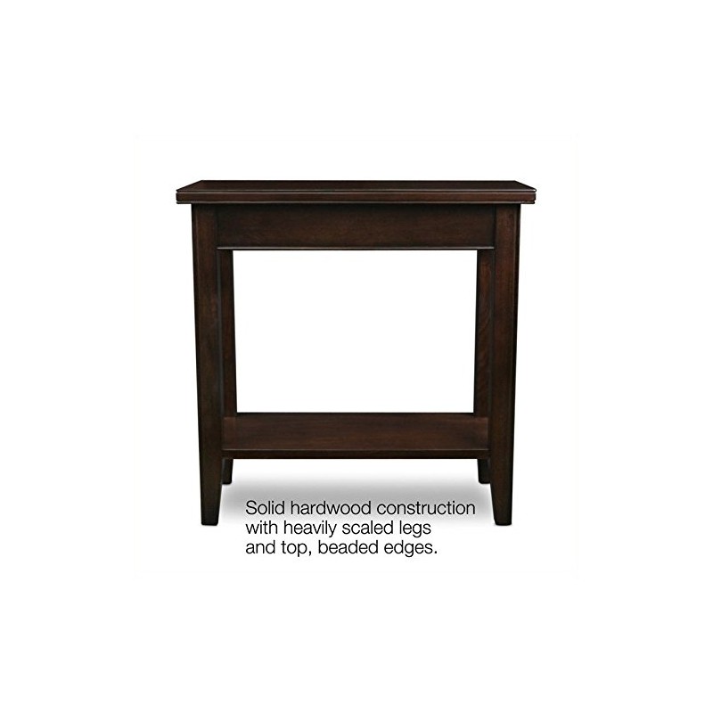 * Durable solid hardwood construction designed for everyday use * Hand applied multi-step Chocolate Cherry finish * Compact design perfect for apartments, condos and small living spaces * High display shelf for easy cleaning under the table * Simple assembly * Dimensions:12" W x 24" D x 24" H
