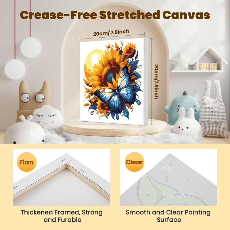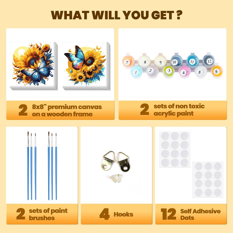 BOWETILE 2 Pack Sunflower Paint by Numbers Adult Kit Beginner, Adult Paint by Number Butterfly Kits on Canvas with Frame, Peinture a Numero Adulte, DIY Acrylic Oil Painting Adult Craft Kits, 8x8in