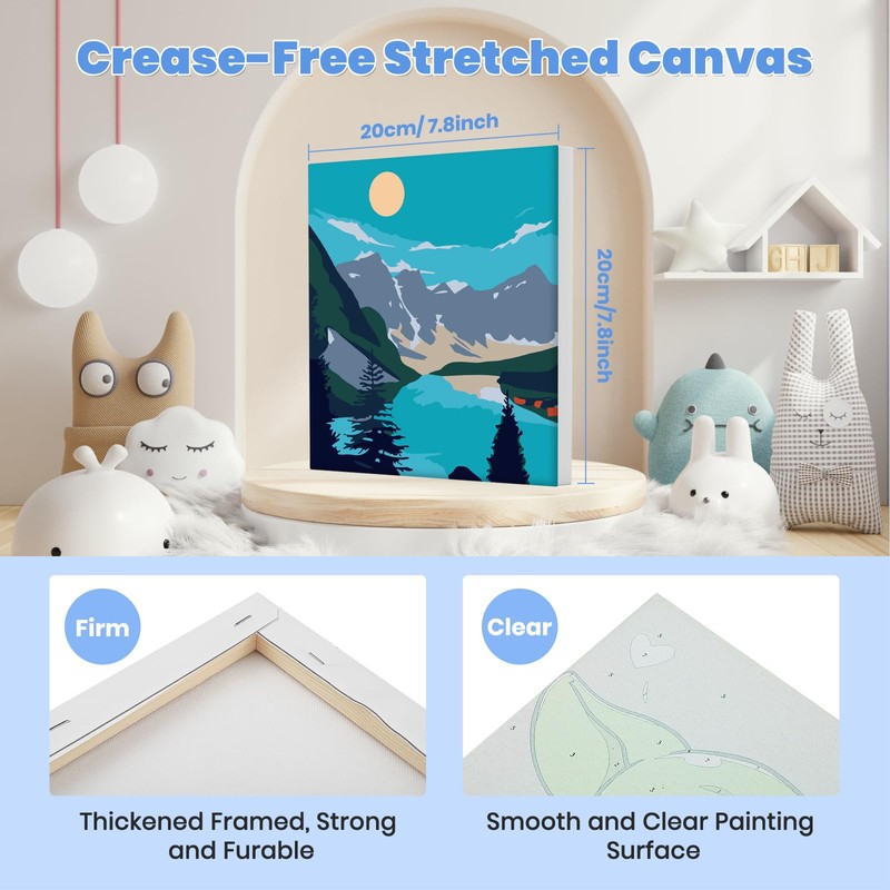 Quality Paints, Vibrant Colors: We use healthy digital pigments that offer high color reproduction and vivid hues. The paint applies smoothly without the need for water dilution. When not in use, simply cover the paint pots. If the paint dries out, just add 1-2 drops of water and mix well. Each paint pot corresponds to a numbered area on the canvas, making painting a breeze and fun-filled!