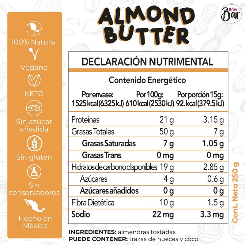 Descubre la exquisita Crema de Almendras KETO de BOWL BAR, una elección perfecta para una alimentación saludable y consciente.
