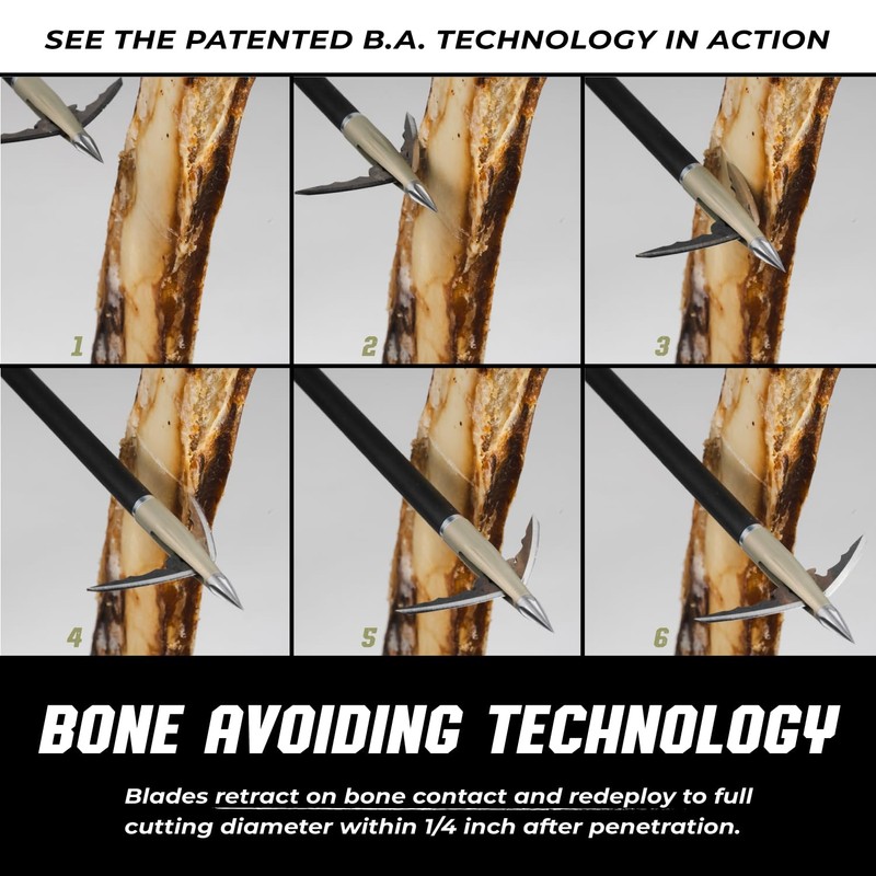 - Bone Evading Advanced Spring Technology (BEAST): Features blades that retract and redeploy when encountering bone, preserving sharpness and kinetic energy for unmatched penetration.