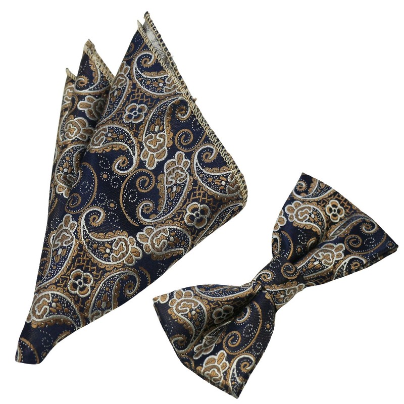 Bowties.jp ul00657 Paisley Brown Bow Tie & Pocket Square Set, Black