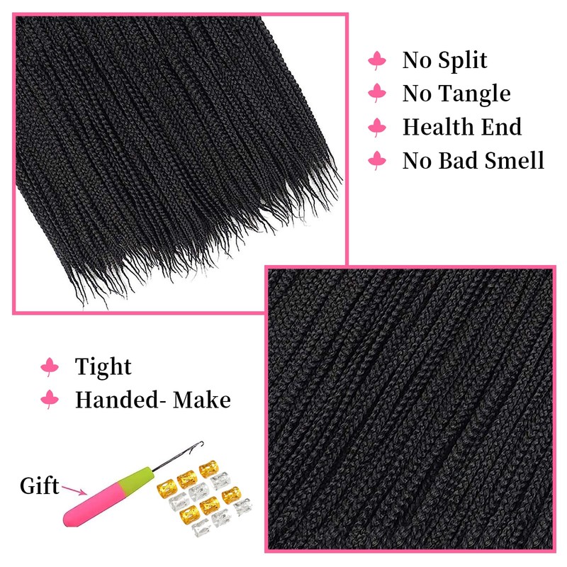 • Material: 100% low temperature synthetic fiber. Box braids crochet hair extension.