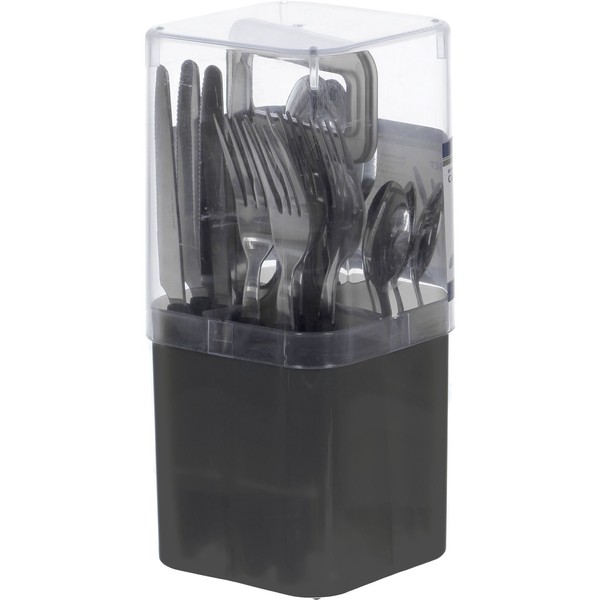 - Cutlery set with four of each Knives, Forks, Spoons and 6 teaspoons.