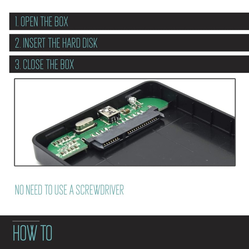 Color: Black; Package Content: Housing – 2.5 inch hard drive enclosure – High Speed USB 2.0 – can be combined with all 2.5 SATA Hard Drives, up to 1.5 TB – Supports Plug & Play – Constructed without screws for easy installation