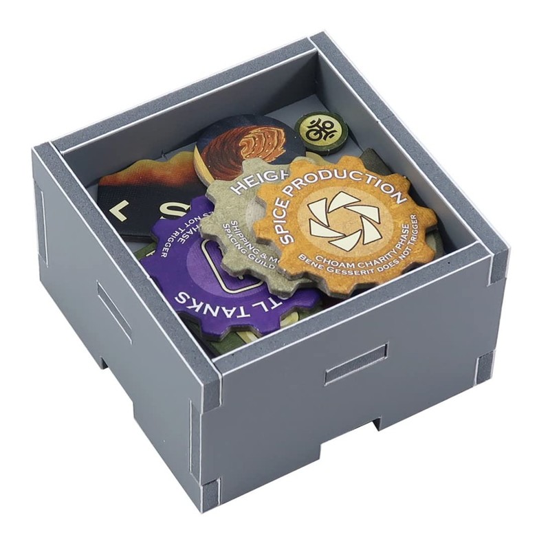 • Insert compatible with Dune, and the Ixians & Tleilaxu expansion. The design provides both efficient storage and improved game play. Many of the trays can be utilised during the game, and they greatly aid set-up and clear-away times. The rules and boards act as a lid on top of the trays.