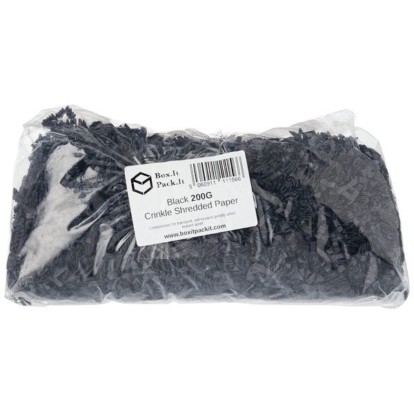 Box.it.pack.it Shredded Crinkle ZigZag Kraft Paper, Black, 200g