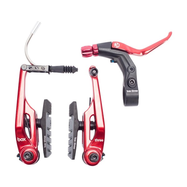 - ✔️ OPTIMIZED AIRFLOW AND EFFICIENCY: The Box Three V Brake is available in 85mm with short reach lever or 108mm with long reach lever. They include two-tone, dual-compound pads that feature a unique finned design that helps improve airflow.
