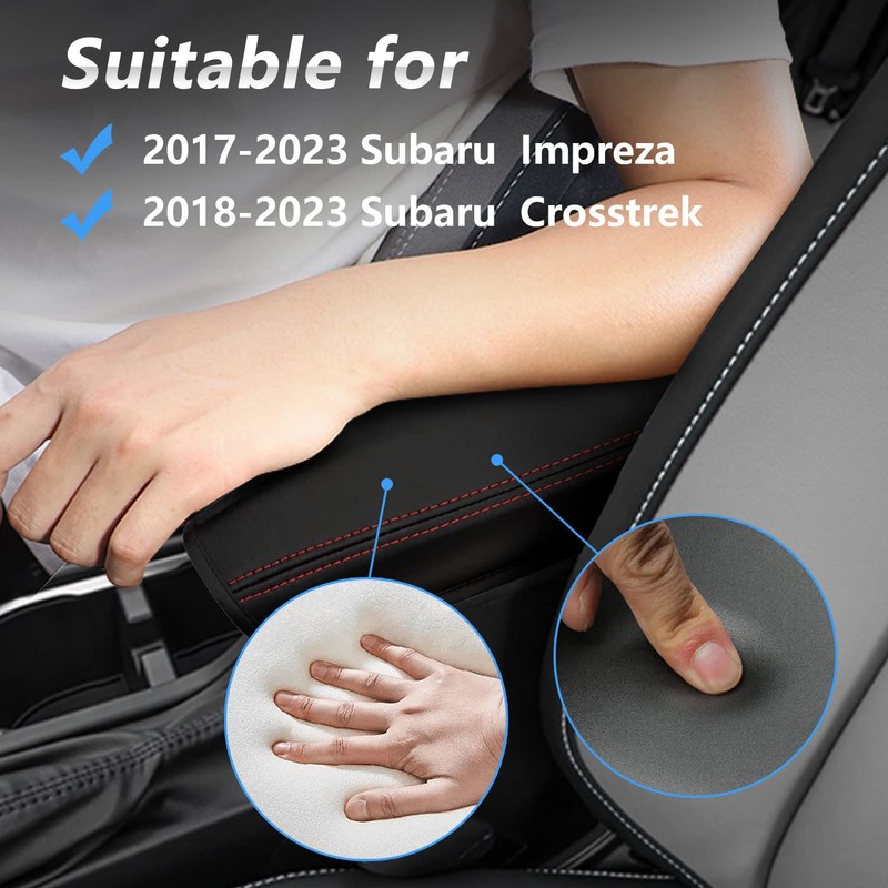 BoxCheer Armrest Cover for 2017-2023 Subaru Impreza 2018-2023 Crosstrek Center Console Protector Pad Anti-Scratch Leather Interior Accessories - Red Stitch