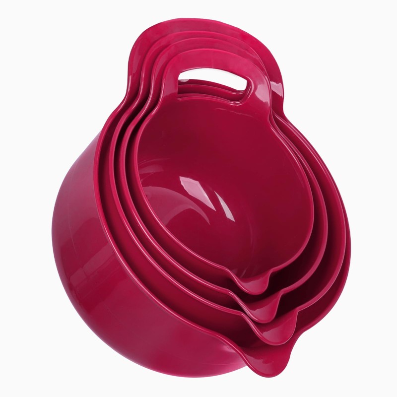 BoxedHome 4 Pack Nesting Mixing Bowl Set with Pour Spout and Handle, Non-Slip Bottom, BPA free Microwave & Dishwasher Safe(Deep Carmine)