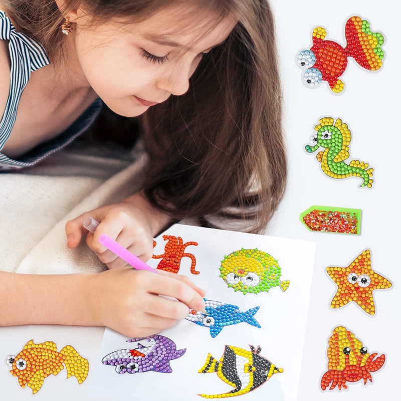 - The crafts for children aged 6-8-12 aged 6-8-12 diamond painting helps your little one improve hand-eye coordination, motor skills and confidence. The colourful sparkling gemstones, the right paper and the cute patterns will attract children's concentration without getting frustrated or bored