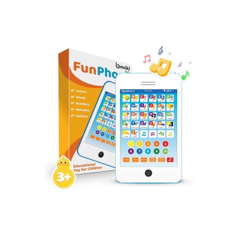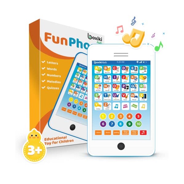 Boxiki Learning Pad Fun Phone with 6 Toddler Learning Games Kids. Touch and Learn Interactive Tablet for Learning Numbers, ABC and Spelling. Educational Toy for Children