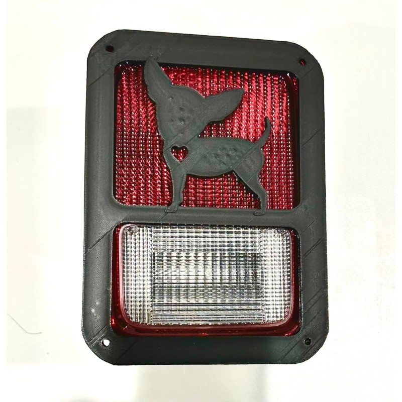 Custom tail light covers for the Jeep Wrangler JK/JKU (2007-2018). These are custom 3D printed with PRO PLA Filament. Add a custom look to your Jeep. No modifications needed to install. Reuse your factory hardware. Sold as a pair.