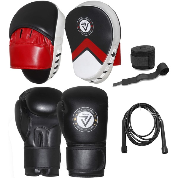 Boxing sparing punching pads and bag glove rex leather + FREE hand wraps & skipping rope