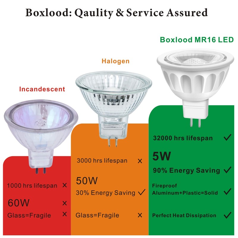 - ☑ Quality MR16/ GU5.3: Max.13 years life time, no warm up time, instant on to full brightness, 80 RA, CE, RoHS certified, no mecury, no lead. We strongly recommend equipping these MR16 LED bulbs to work with Boxlood MR16 LED transformer for a 100% compatibility which can guarantee the bulbs wouldn't flash and work properly