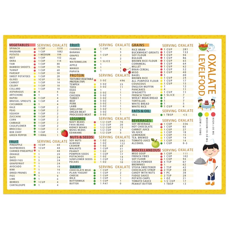 • Special Design: Our low oxalate food list chart adopts a colorful, high-definition, non-fading, and beautiful layout design. It not only provides valuable information, but also serves as a decoration.