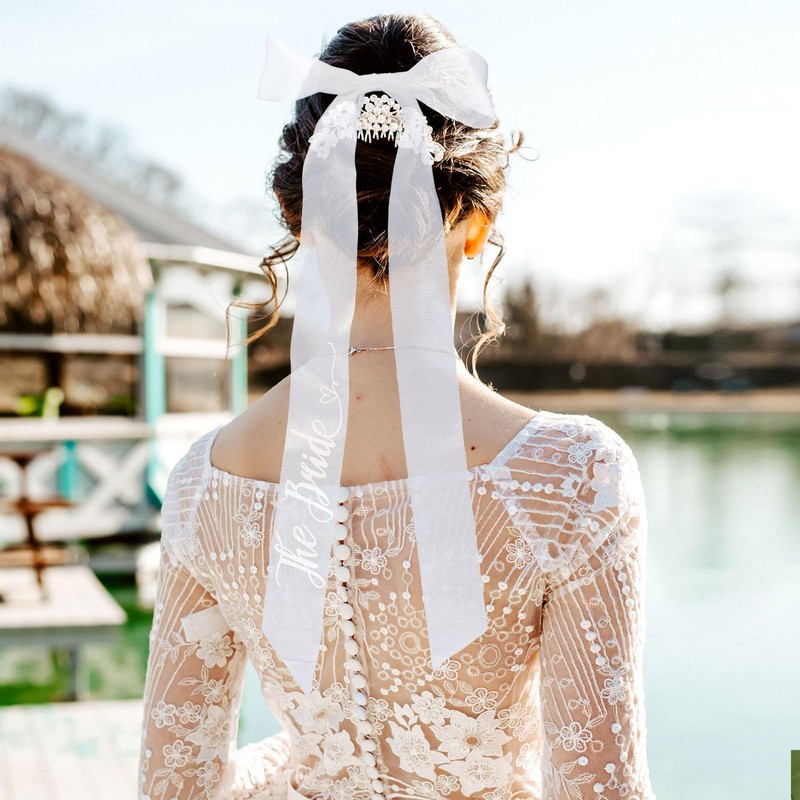 - Package Include: Receive 1 bride hair bow clip, featuring cute white bow, and stylish hot-stamped "The Bride" hand script font, adding a touch of sophistication.