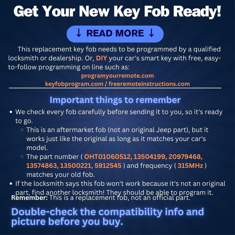 - 🔧 Professional Locksmith Programming Required – This Chevy Malibu and Cruze key fob must be cut and programmed by a locksmith or dealership. Confirm your existing key layout before purchasing.