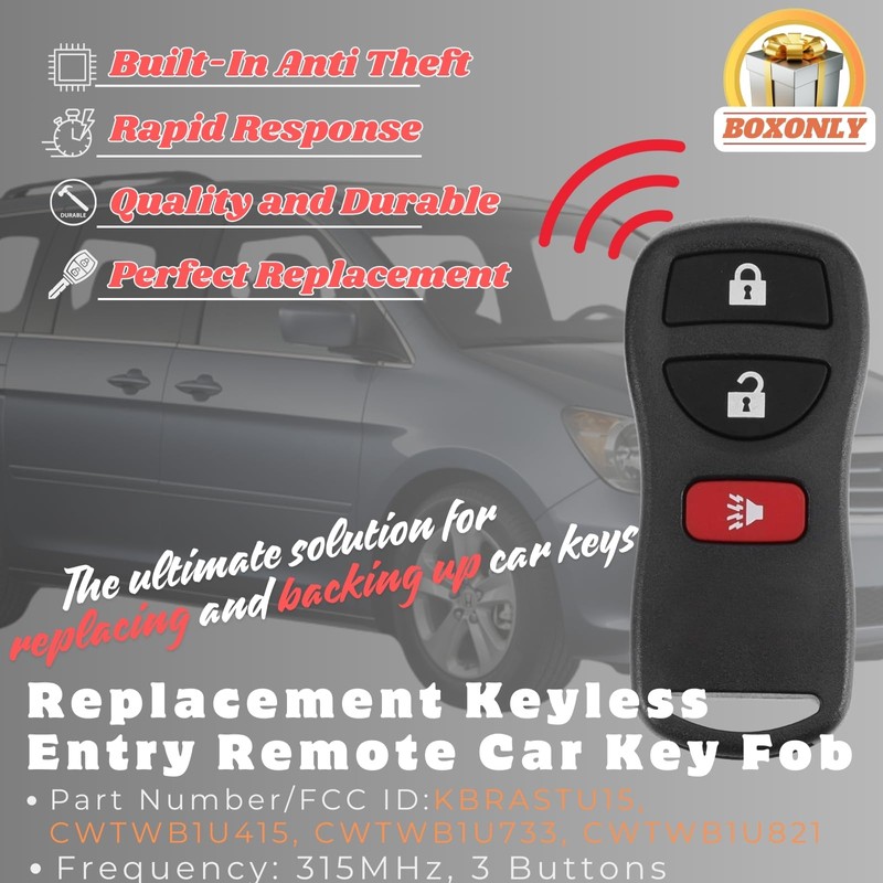 Boxonly Replacement Keyless Entry Remote Car Key Fob 315MHz Compatible with Nissan Pathfinder 2005-2012, for Nissan NV1500 NV2500 NV3500 2012-2021 3-Button Car Key FCC ID: KBRASTU15, CWTWB1U415