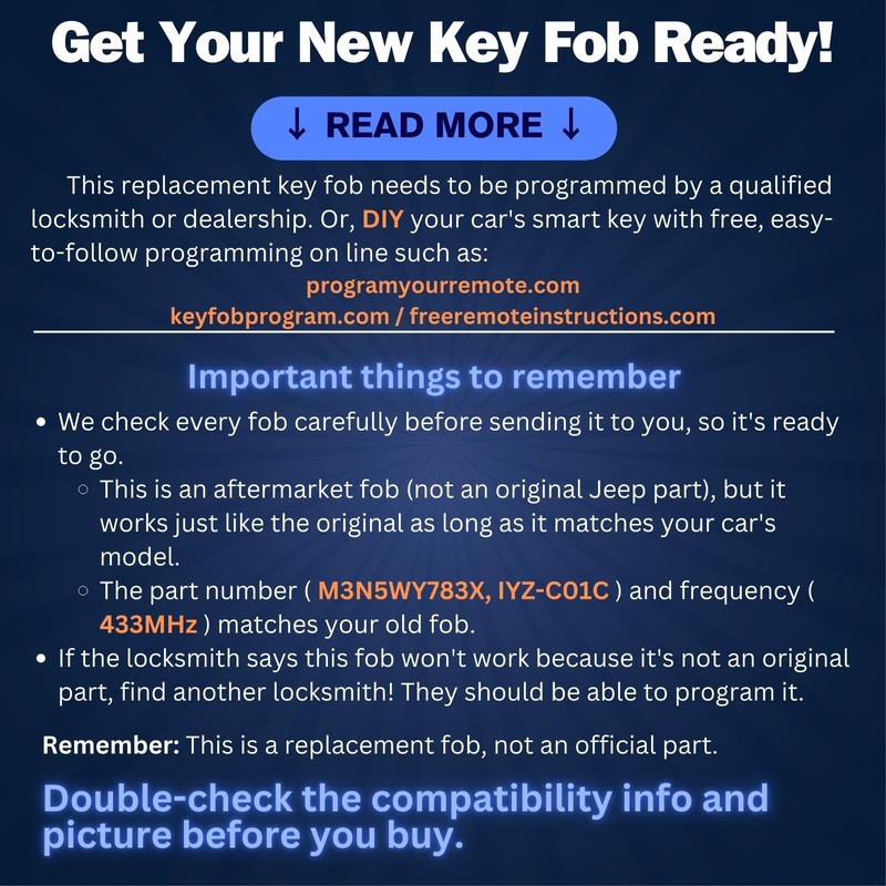 - 💡 Programming Information - Requires professional locksmith service for activation. Works seamlessly with FCC ID M3N5WY783X and OE 56046707AG.