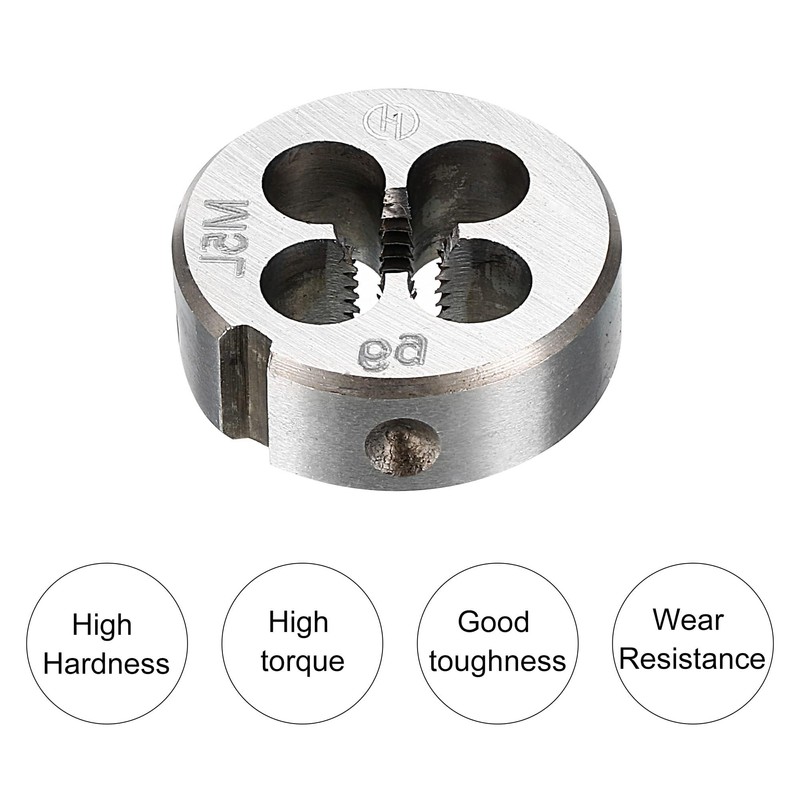 • High speed steel machine screw tap provides combination of hardness and toughness for wear resistance. Alloy tool steel round die features good abrasion resistance. Tap and die set are sharp and durable, and with clear threads to meet the processing requirements.