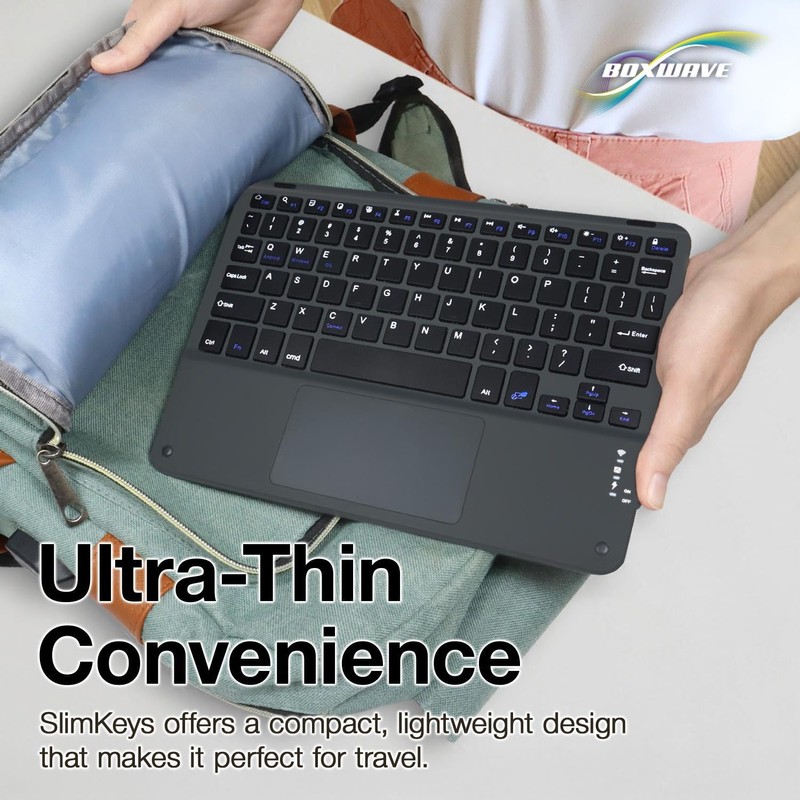 - 🪶 [SLIM AND LIGHT] At only 3/16 inch, the SlimKeys Bluetooth Keyboard is super thin and light! Even at this size, the keys are big enough for the same TACTILE touch-typing you would do on a full size keyboard, but thin and light enough to take with you anywhere!