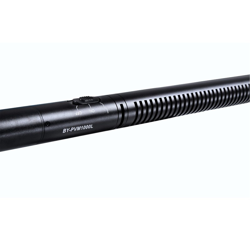 The BOYA BY-PVM1000L Shotgun Microphone features an extended length of 38CM that maximizes directivity and narrows the pickup area. The result is focused on audio capturing and minimal noise and artifacts from sources outside the pickup area. The BY-PVM1000L is a popular choice among broadcast and film recording professionals, and also be used in ENG (News Gathering), sound design applications etc. Overall length of 38cm with an extremely narrow, highly directional pickup pattern Ideal for use in broadcasting, film/TV production, and theater sound reinforcement Direct-coupled, balanced output ensures a clean signal even in high-output conditions Transformerless design for improved pickup of transients Rugged housing made of lightweight structural-grade aluminum alloy Interference tube design for narrow acceptance angle Switchable 80Hz high-pass filter.