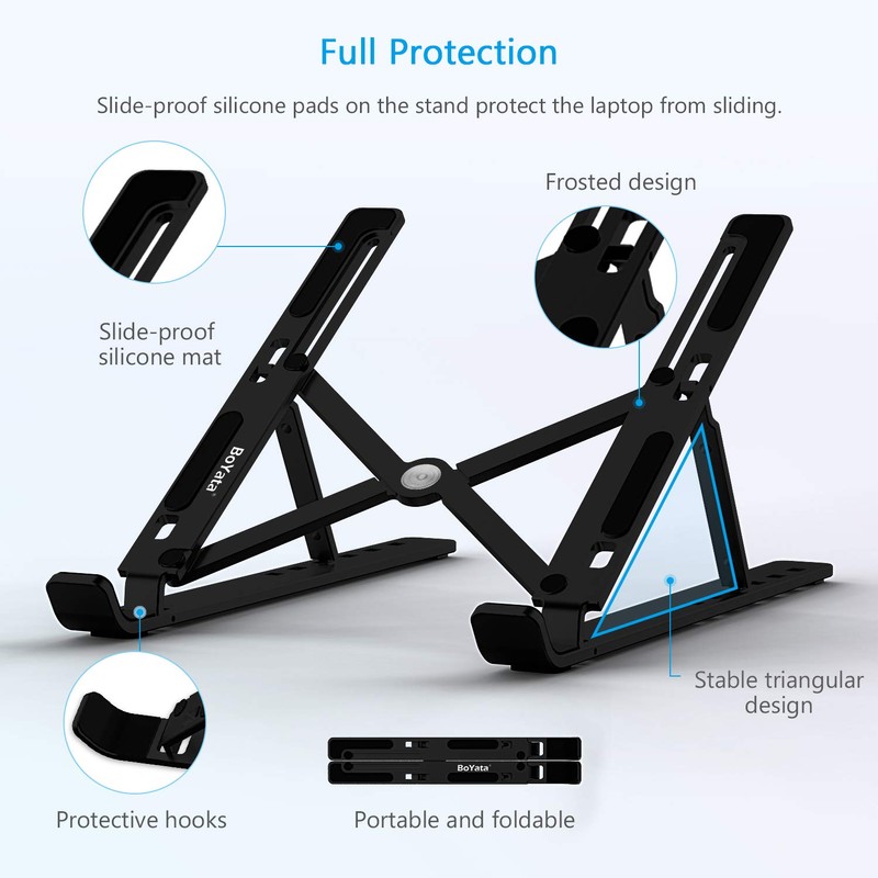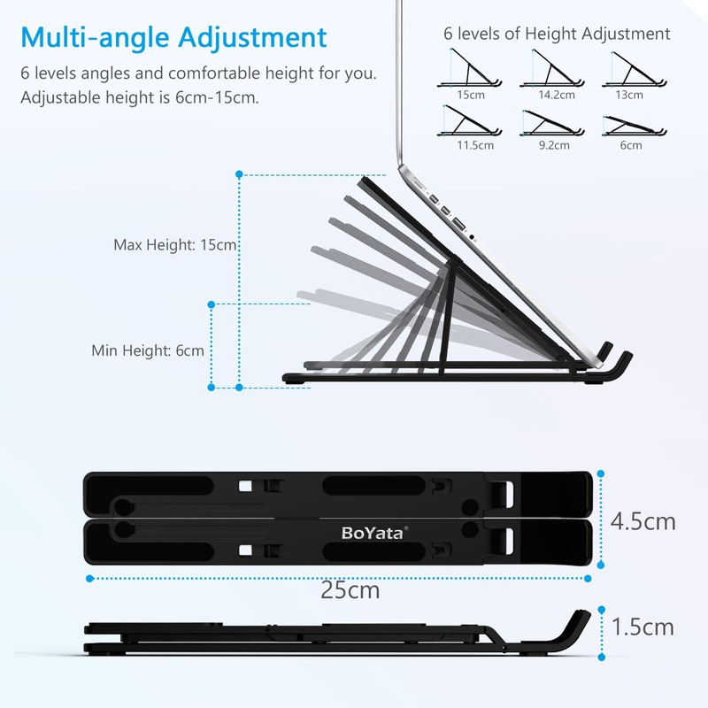 BoYata Laptop Stand, 6 Levels of Height Adjustable Portable Laptop Holder for Desk, Aluminum Foldable Laptop Riser, Compatible with MacBook Air/Pro, Dell, HP, Acer, Most 10-15.6” Laptops-Black