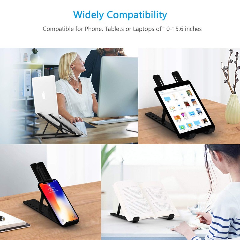 • 【Wide Compatibility】This computer stand is suitable for most devices from 10-15.6 inches. Compatible for MacBook, MacBook Air, MacBook Pro, Microsoft Surface, Google Pixelbook, Dell XPS, HP, Acer, Chromebook, Sony, Samsung, ThinkPad, iPad Pro and more.