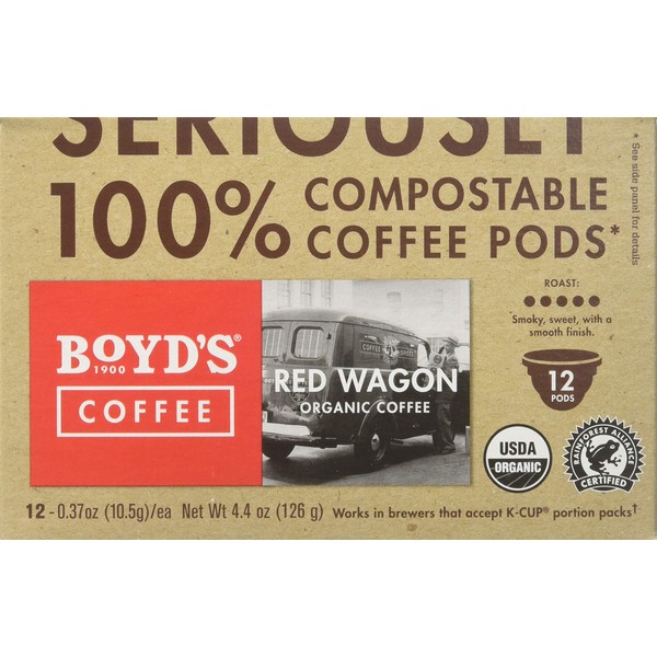 Boyd's Organic Red Wagon Coffee Dark Roast, 12 Count (Pack of 6)