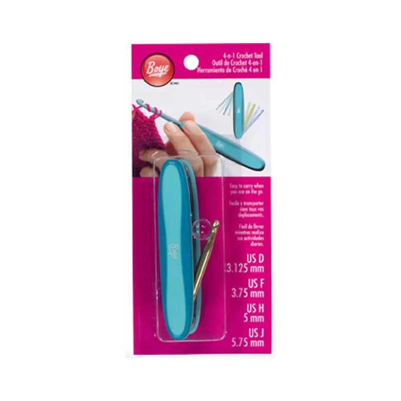 Continue with your crocheting projects wherever you go with the Boye 4-In-1 Tool With D, F, H, J Hooks. This cute and compact tool encloses four crochet hooks of four different sizes, apt for different crocheting patterns. It sports a stylish make and locks the hooks securely when not in use for enhanced safety. With this 4-in-1 crochet tool in your handbag, you can complete your assignments even on the go.